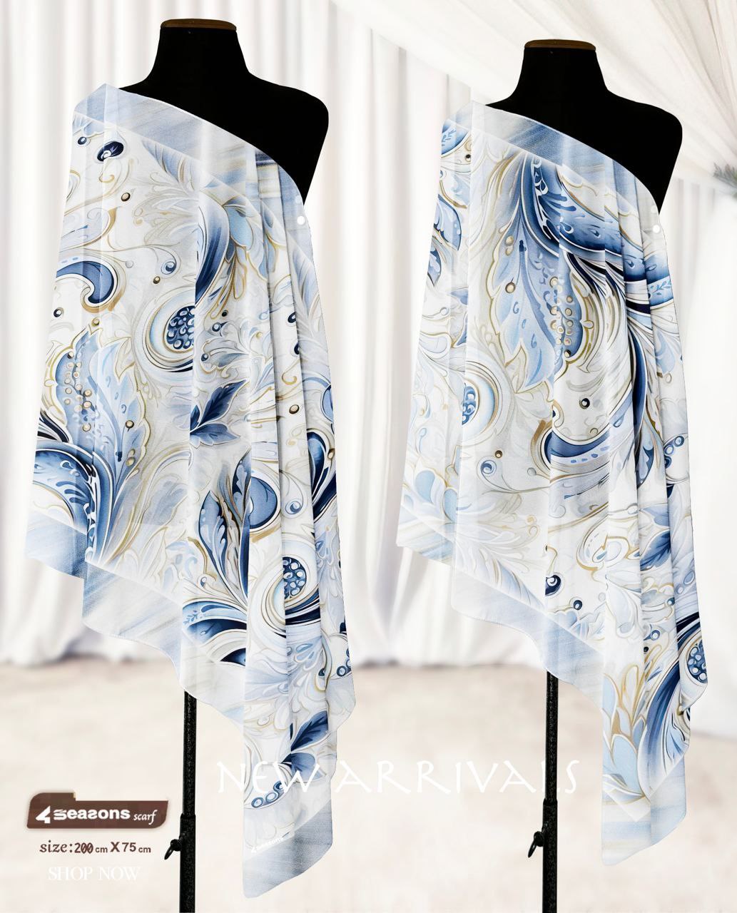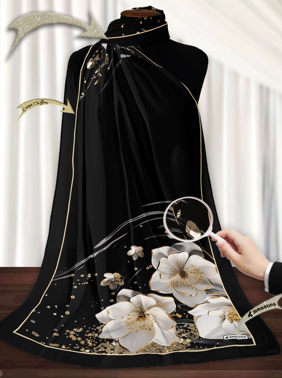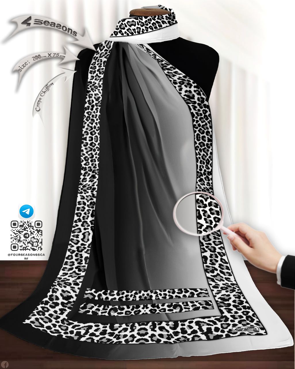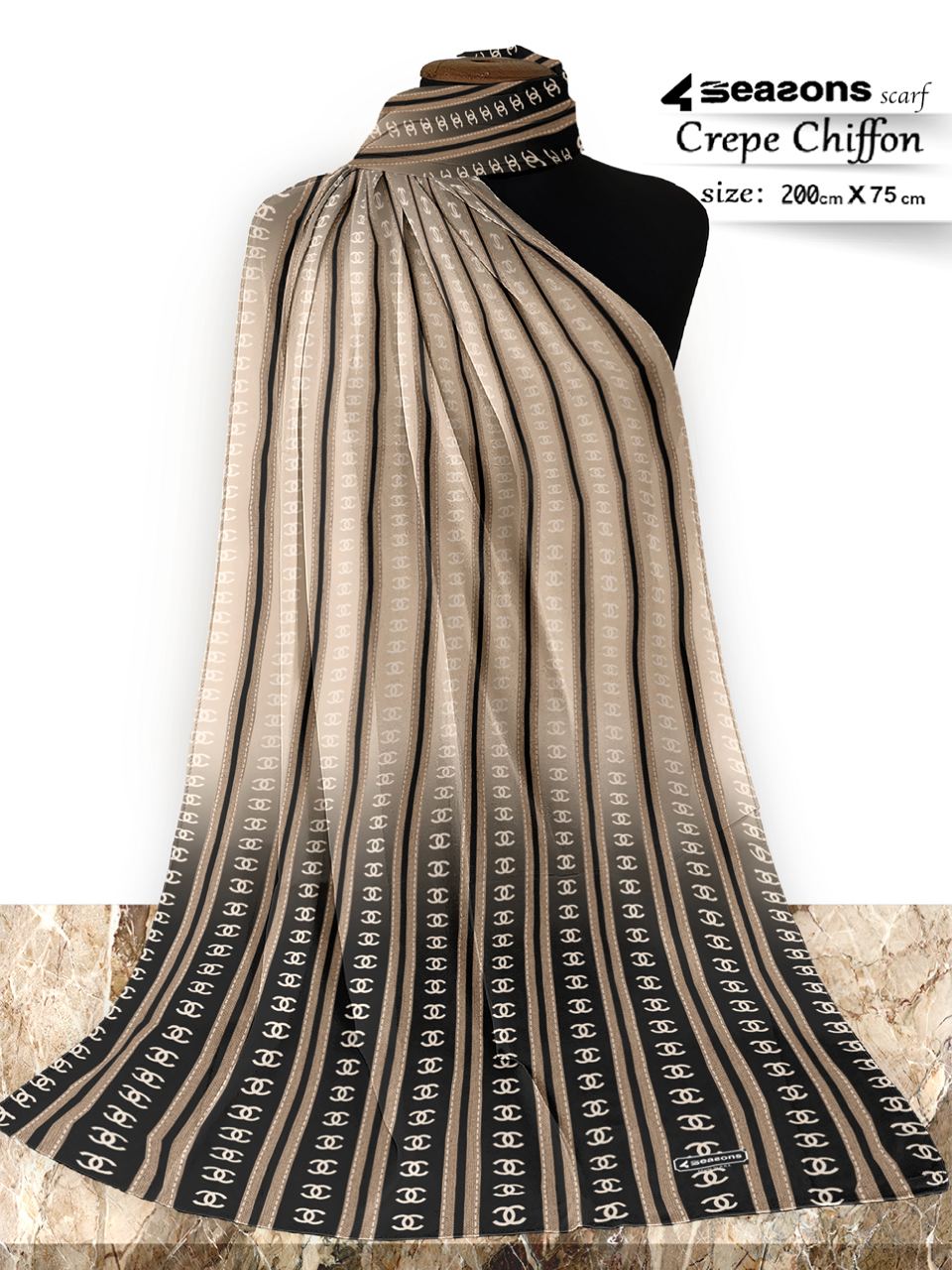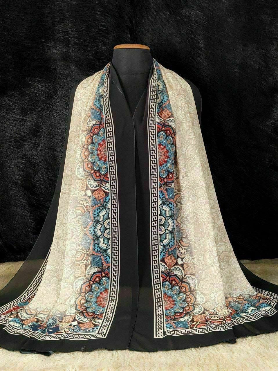 Printed shiffon crepe scarf